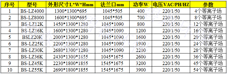 離子廢氣凈化設備參數表