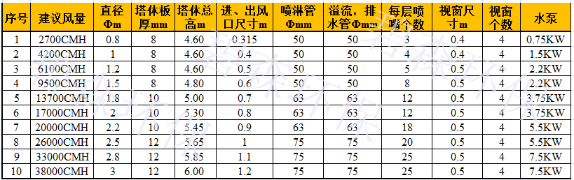 洗滌塔本體包含了廢氣入口、出口、視窗,維修人孔及洗滌塔內部用以支撐及固定用的結構,以確保設備本身的耐蝕性從而增加其使用壽命。選用材質為抗紫外線PP。